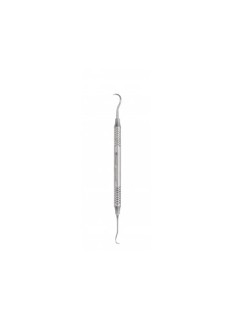 Une rainure est d'abord réalisée depuis le bord inférieur de la couronne jusqu'à la surface occlusale. La rainure doit être suffisamment profonde pour atteindre le ciment. L'extrémité de travail de la Crown Off est placée longitudinalement dans la rainure et tournée comme si elle élargissait la rainure. La lame est tournée jusqu'à ce que la couronne se desserre et se soulève. La lame reste fermement dans la rainure et il est facile de la contrôler même lorsqu'une grande force est utilisée.