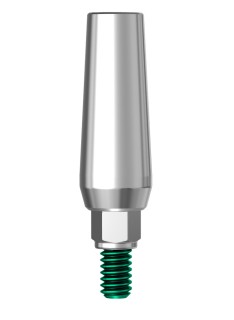 Utilisé pour fabriquer des prothèses unitaires ou à unités multiples scellées en présence d'un sillon gingival profond. Emballé avec une vis de pilier. Alliage de titane. Revêtement TiN pour l'esthétique. Couple final: 30 Ncm.