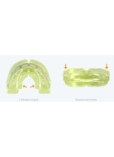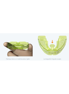 • la languette linguale plate d'MRC brevetée pour optimiser la position de la langue et un décalage de 3 mm pour favoriser la correction de la classe III.