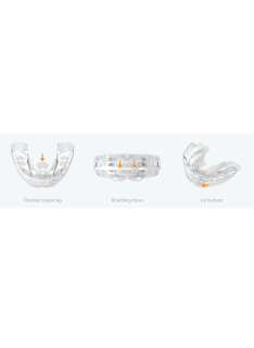 • L’AA2 est la deuxième étape de la gamme d’appareils Adult Aligner et se concentre spécifiquement sur le développement des arcades (pour créer plus d’espace pour la langue tout en l’entraînant à se positionner correctement au repos) et sur la correction continue des mauvaises habitudes pour améliorer d’autres dysfonctionnements myofonctionnels.